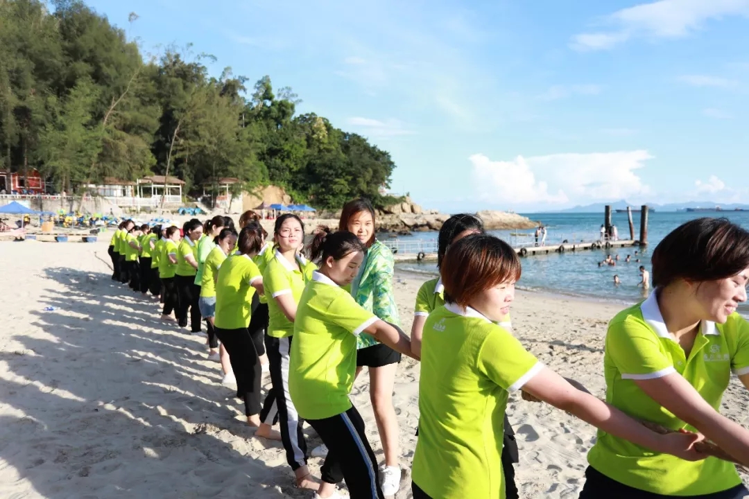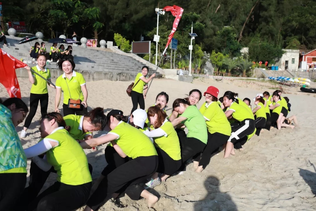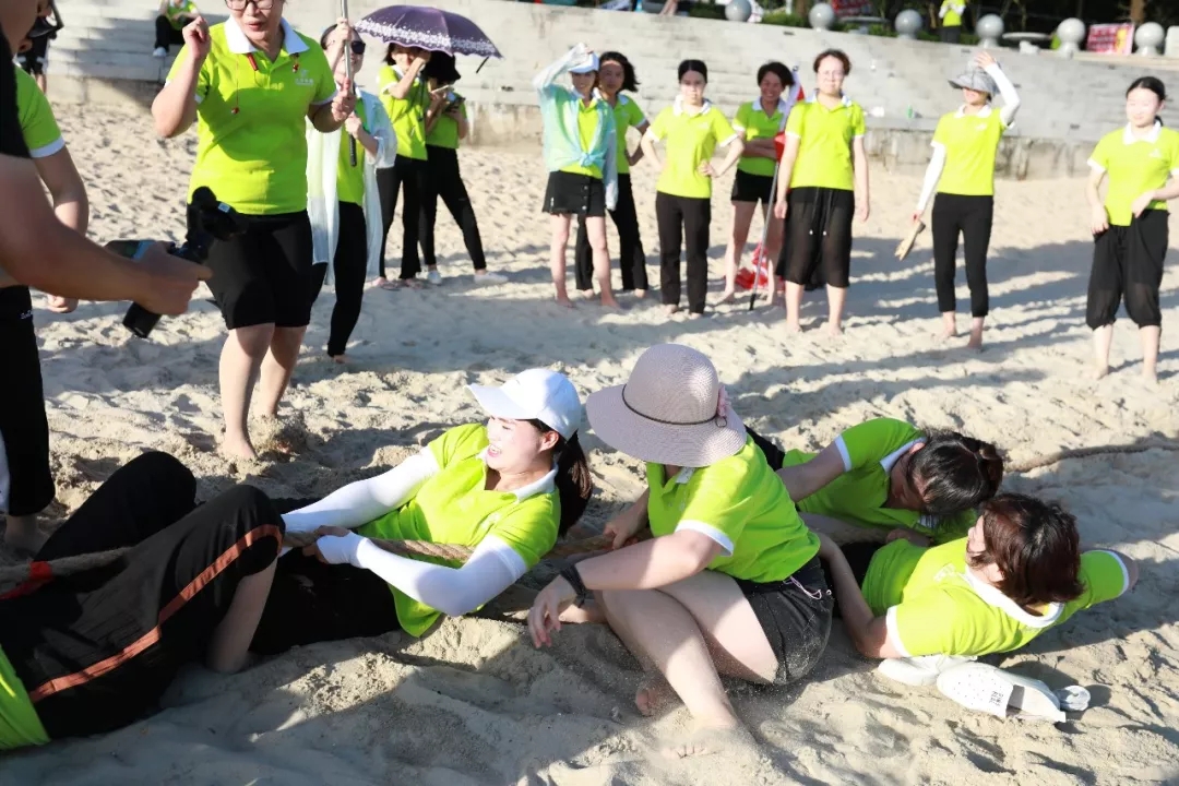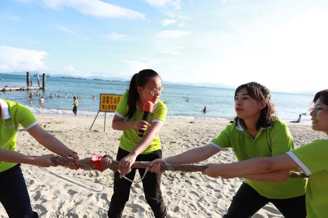 藍(lán)天白云,水清沙幼,大概是每一個(gè)人對(duì)于海灘的美好幻想。在這樣一片美麗的沙灘上,游戲活動(dòng)必不可少,拔河游戲、穿越呼啦圈、沙灘排球紛至沓來。家人們個(gè)個(gè)使出渾身解數(shù),力爭(zhēng)第一。相信此刻,所有的瑣事已經(jīng)被拋至九霄云外,剩下的唯有開心了吧!