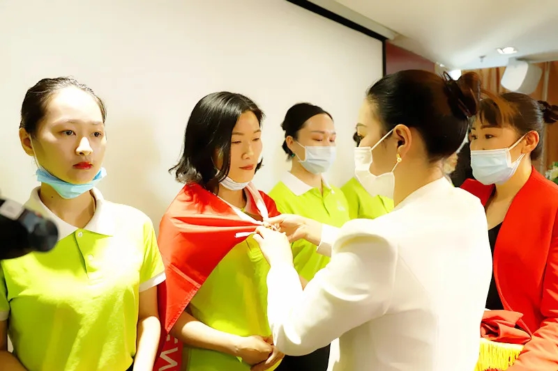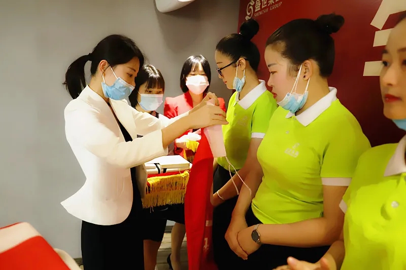 儀式上,盛世集團(tuán)何總、吳董為新家人授予入職戰(zhàn)袍、戰(zhàn)徽、戰(zhàn)旗?,F(xiàn)場吳董致辭歡迎,給予新成員強(qiáng)大的力量。