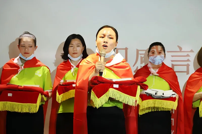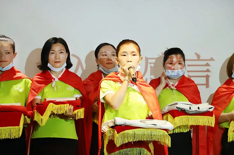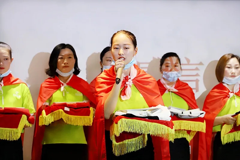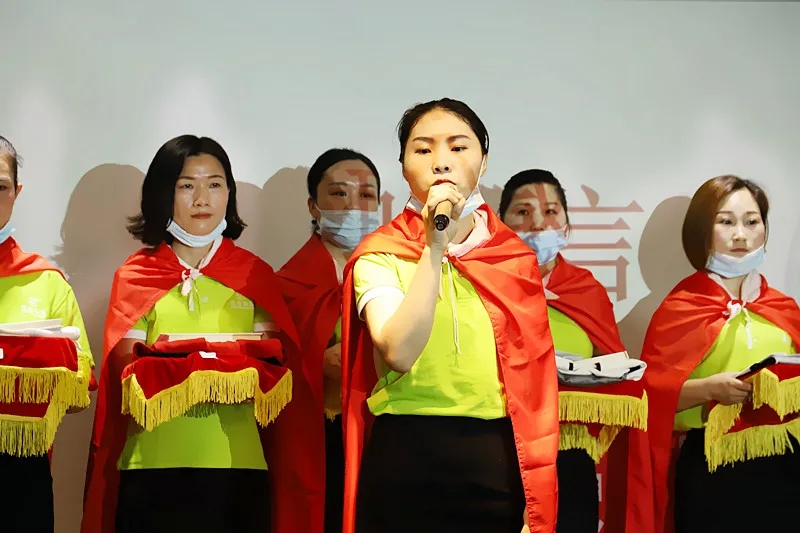 緊接著,臺(tái)上的新成員進(jìn)行莊嚴(yán)的入職宣誓,身披戰(zhàn)袍猶如即將奔赴戰(zhàn)場的戰(zhàn)士,氣勢(shì)磅礴的發(fā)言讓現(xiàn)場所有家人為此熱血沸騰。此刻,我們將把職業(yè)當(dāng)事業(yè),把使命當(dāng)生命,把信念當(dāng)信仰,把企業(yè)文化融入骨髓為盛世未來奮斗終生!